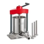 Ručna stolna punilica iz asortimana Friedr. Dick idealna je za kućnu i malu profesionalnu proizvodnju. Inox cilindar je uklonjiv i polirane unutrašnjosti pa se lako čisti, dok plastični klip sa zračnim ventilom smanjuje stvaranje mjehurića i omogućuje ravnomjerno punjenje. Kompaktan i lagan dizajn može se jednostavno pričvrstiti na stol. U setu dolaze četiri plastične cijevi različitih promjera za razne vrste kobasica. Odličan izbor za domaće proizvođače, lovce i sve koji žele kontrolu nad sastojcima.